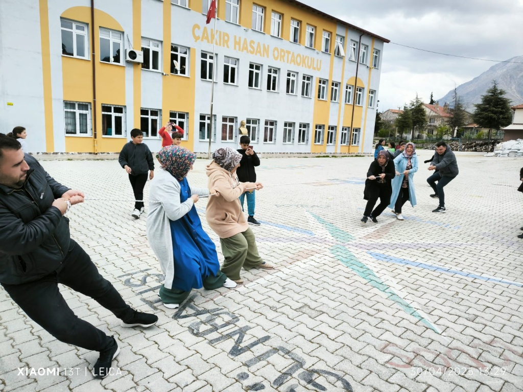 Ailemle Eğitim Yolculuğum projesi kapsamında "Aileler Yarışıyor" etkinliği yapıldı. Ailelerin çocuklarıyla birlikte etkinliklere katılması, hem eğitim sürecini hem de çocuklarıyla ilişkilerini daha derinlemesine anlamalarına olanak tanıyan bu etkinlikte halat çekme, çuval yarışı ve yumurta taşıma yarışı yapıldı. Eğlenceli anların yaşandığı etkinlikte kazananlara ödülleri takdim edildi. Etkinlik koordinatörü öğretmenimize ve etkinliğe katılım gösteren velilerimize teşekkür ederiz. #ailemleeğitimyolculuğum #aileleryarışıyor #eğitiminyüzyılı
